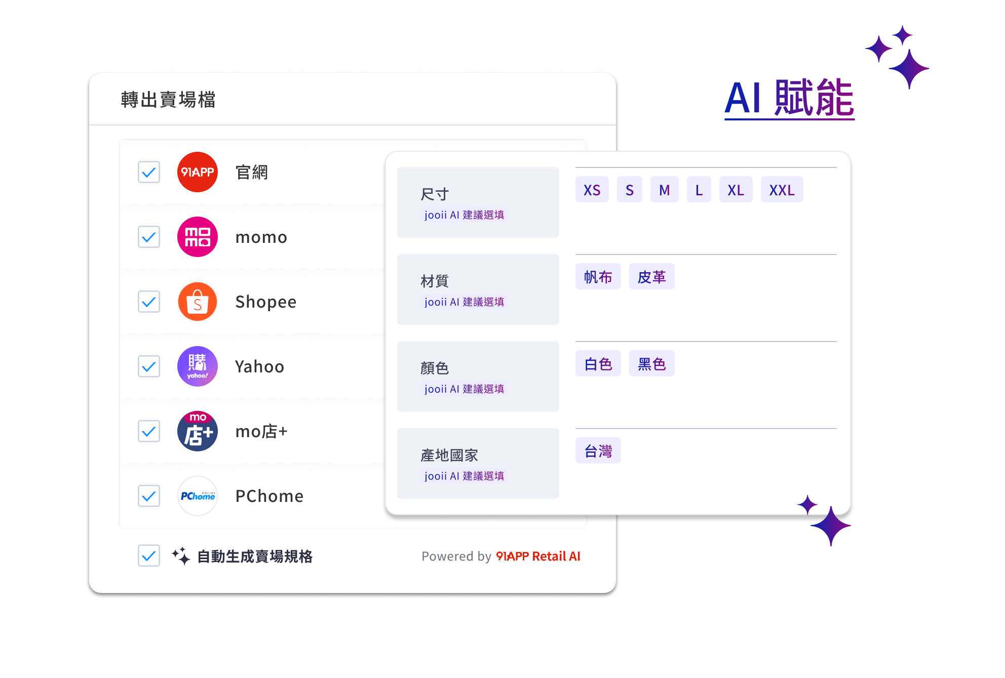 - 獨家支援多通路商品上架,包含官網與五大 B2C 電商平台